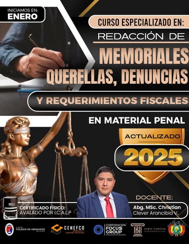 REDACCION DE MEMORIALES, QUERELLAS, DENUNCIASY REQUERIMINENTOS FISCALES EN MATERIA PENAL